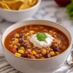 This Easy Taco Soup recipe is a flavorful and hearty dish perfect for weeknight dinners. Made with lean ground beef, black beans, corn, and diced tomatoes seasoned with taco spices, it offers a comforting and spicy twist on traditional soup that’s both simple and satisfying.