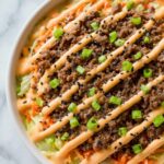 Fresh garnishes are where you can really play around and personalize the dish. Thinly sliced green onions add a fresh bite, while black sesame seeds bring a subtle nuttiness and rustic look. A drizzle of the spicy sriracha mayo is an absolute game changer, turning every forkful into a flavor explosion.