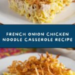 This hearty French Onion Chicken Noodle Casserole combines tender cooked chicken, creamy soup, and tangy French onion dip with cheesy egg noodles, all topped with crispy fried onions for a comforting and easy-to-make baked meal perfect for family dinners.