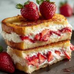 - Add strawberries and top: Spoon the sugared strawberries evenly over the cheesecake filling, then place the remaining 4 slices of bread on top to form sandwiches.