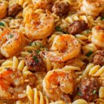 This Garlic Butter Shrimp and Sausage Skillet Pasta is a flavorful and easy-to-make one-pan meal featuring succulent shrimp, smoky sausage, and tender pasta all tossed in a rich garlic butter sauce. Perfect for a quick weeknight dinner or meal prep, this dish combines bold spices, fresh parsley, and a hint of lemon juice for a delicious American-inspired main course.