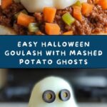 This Ghostly Ghoul-ash recipe is a comforting and spooky twist on traditional goulash, perfect for Halloween or any fun family dinner. Ground beef, vegetables, and a tomato-based sauce simmer together and are served over hearty potatoes, topped with adorable sour cream ghosts and olive eyes for a festive touch.