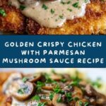 This Golden Crispy Chicken with Parmesan Mushroom Sauce recipe offers tender, juicy chicken breasts coated in a crisp Parmesan breadcrumb crust, served with a rich and creamy mushroom sauce. Perfect for a comforting weeknight dinner, this dish combines simple ingredients with classic techniques to deliver a flavorful, elegant meal in just 35 minutes.