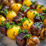 Pair these kabobs with a crisp green salad to offset the rich meat and potatoes, or go for grilled vegetables like asparagus, zucchini, or bell peppers to keep the theme going. Creamy garlic mashed potatoes or a cool cucumber and yogurt dip also work wonders alongside these skewers, creating a balanced plate full of flavor and variety.