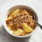 Pop the dish into your preheated oven and bake for 30 to 35 minutes. You’ll know it’s ready when the topping is golden brown, the apples are bubbling, and your kitchen smells irresistibly cozy.