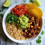 Now it’s time to build your Healthy Turkey Taco Bowl Rezept Recipe in serving bowls. Layer a base of cooked brown rice or cauliflower rice, spoon the turkey mixture over it, then top with cherry tomatoes, diced red bell pepper, and creamy avocado slices. Finish with a sprinkle of fresh cilantro and a generous squeeze of lime juice for that perfect bright finish.