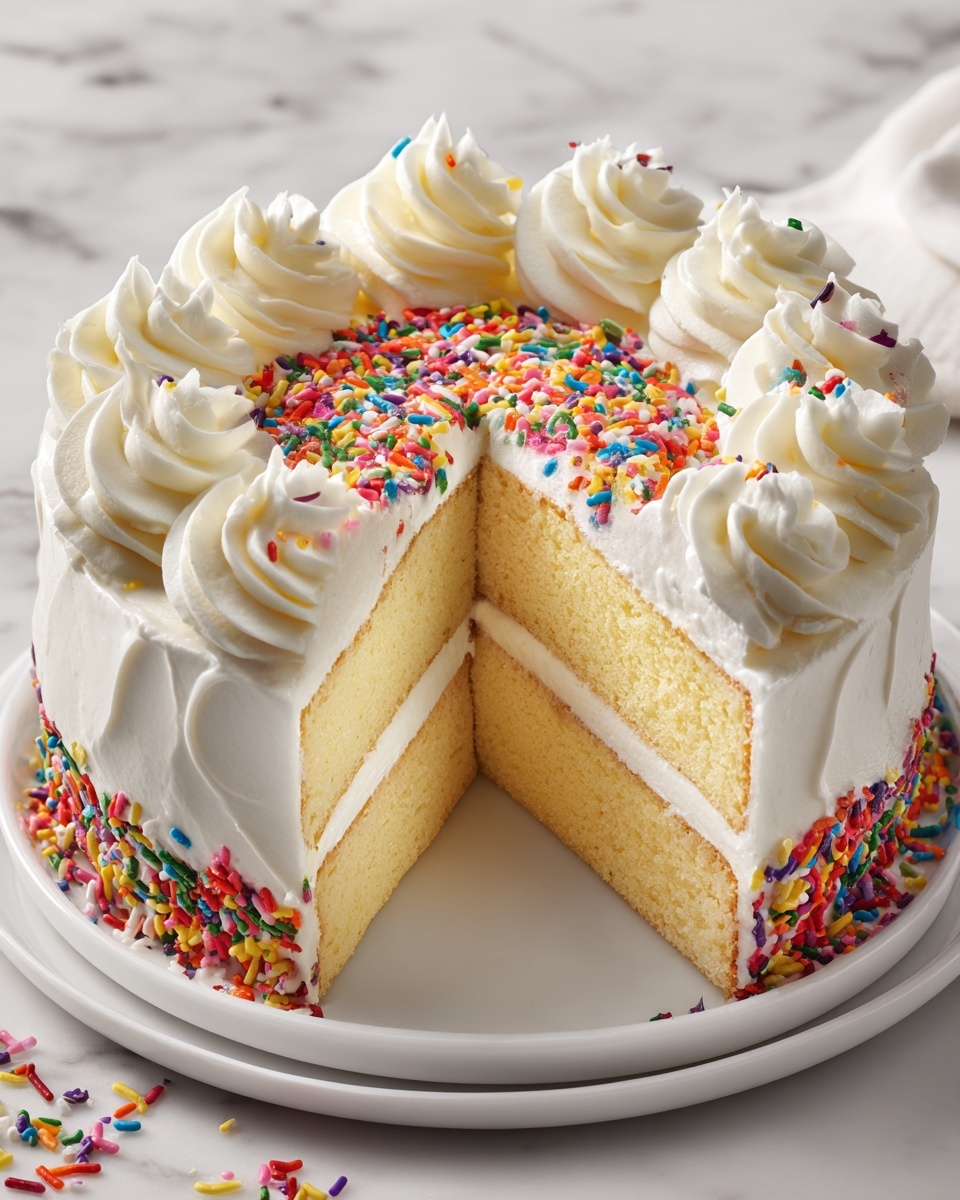 These simple yet essential ingredients combine perfectly to create a moist, fluffy cake with a beautiful crumb and rich flavor. Each one plays a vital role in building texture, sweetness, and that unmistakable vanilla essence that makes this cake so irresistibly delightful.