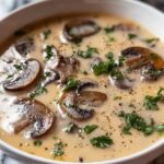 A comforting and flavorful Hungarian Mushroom Soup featuring tender mushrooms simmered with onions, chicken broth, and aromatic paprika, finished with creamy sour cream and fresh parsley for a rich, hearty dish perfect for cozy meals.