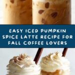 Top your iced pumpkin spice latte with a generous swirl of whipped cream if you’re feeling indulgent. Sprinkle a pinch of extra pumpkin pie spice over the top for an inviting aroma and a pretty presentation. Sip immediately and savor the cozy celebration of fall in a glass.