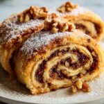 - Spread filling: Evenly distribute the walnut filling over the rolled-out dough, covering the surface thoroughly.