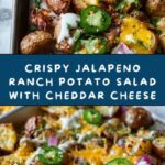 Jalapeno Popper Roasted Potato Salad is a flavorful twist on classic potato salad, featuring crispy roasted red potatoes seasoned with ranch and pepper, mixed with a creamy dressing of ranch, mayonnaise, and apple cider vinegar. This salad is enhanced with diced jalapenos, red onions, sharp cheddar cheese, and savory cooked meat, making it a hearty and spicy side dish perfect for gatherings or weeknight meals.