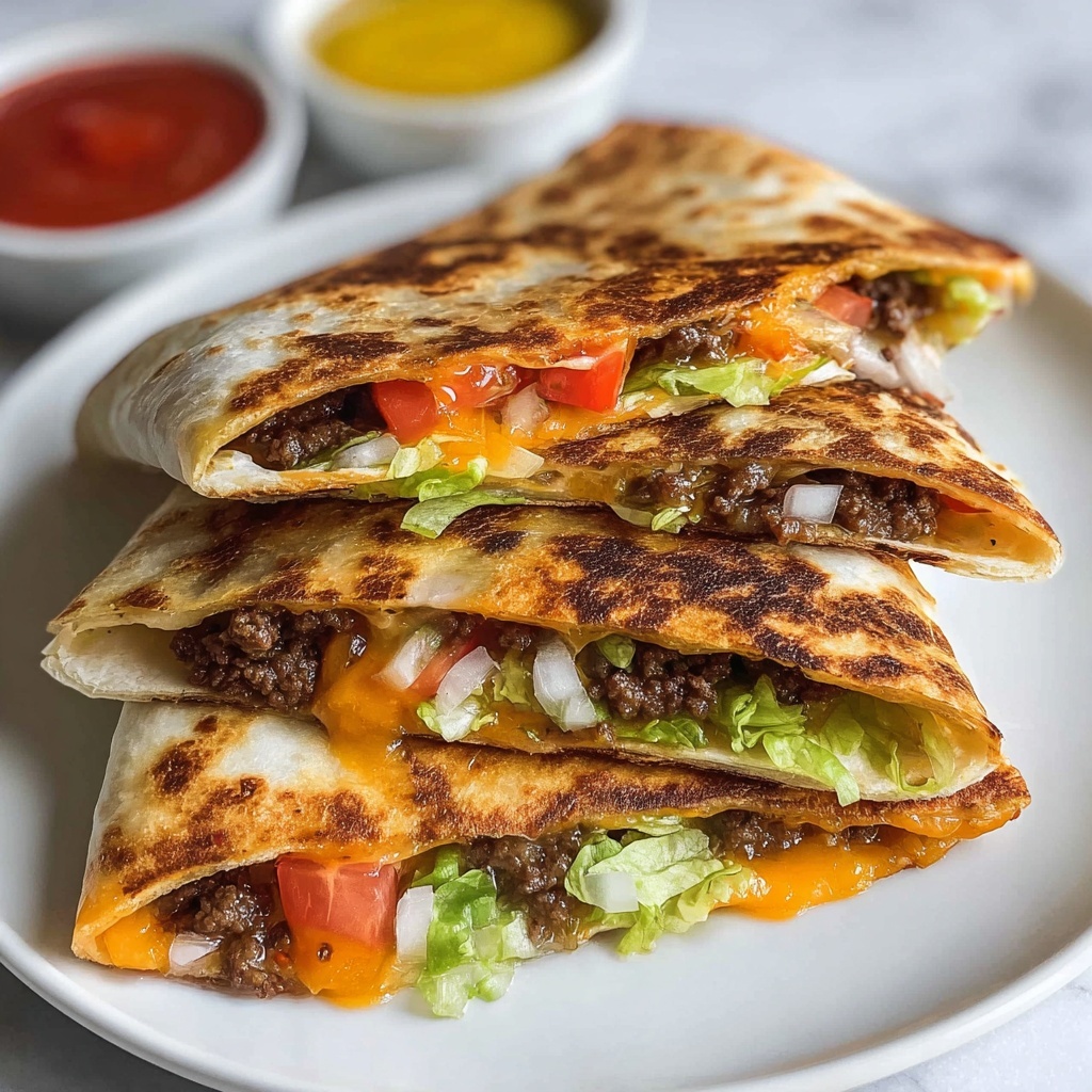 To elevate this feast, serve quesadilla wedges stacked with small ramekins of ketchup, mustard, and maybe a smoky chipotle mayo for dipping. Consider wrapping each wedge in parchment for easy hand-held eating at casual gatherings or game day parties.