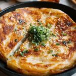 This Korean Cheese Pancake recipe features crispy, golden potato pancakes filled with gooey mozzarella cheese, offering a delightful blend of savory and slightly sweet flavors. Perfect as a snack or appetizer, these pancakes are easy to make with simple ingredients and pan-frying to achieve the perfect crispy texture.