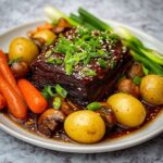This Korean Style Pot Roast is a hearty and flavorful dish featuring tender beef chuck roast slow-cooked to perfection with a savory and slightly sweet Korean-inspired sauce. Infused with gochujang, soy sauce, garlic, and sesame oil, then complemented by carrots, potatoes, and shiitake mushrooms, this dish offers rich umami flavors and a comforting meal perfect for family dinners or special occasions.