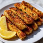 These Lemon Garlic Parmesan Chicken Tenders are a flavorful and crispy oven-baked dish featuring tender chicken strips marinated in fresh lemon juice and garlic, coated with a crunchy Parmesan and panko breadcrumb mixture, then baked to golden perfection. Perfect for a quick dinner or snack, they combine zesty, cheesy, and savory flavors in every bite.