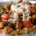 This Loaded Jerk Chicken Baked Potato with Jerk Alfredo Sauce combines tender, spicy jerk-seasoned chicken and creamy, flavorful Alfredo sauce atop a fluffy baked russet potato. Topped with melted cheese and fresh herbs, this dish is a perfect blend of comforting textures and bold Caribbean-inspired flavors ideal for a hearty weeknight meal.