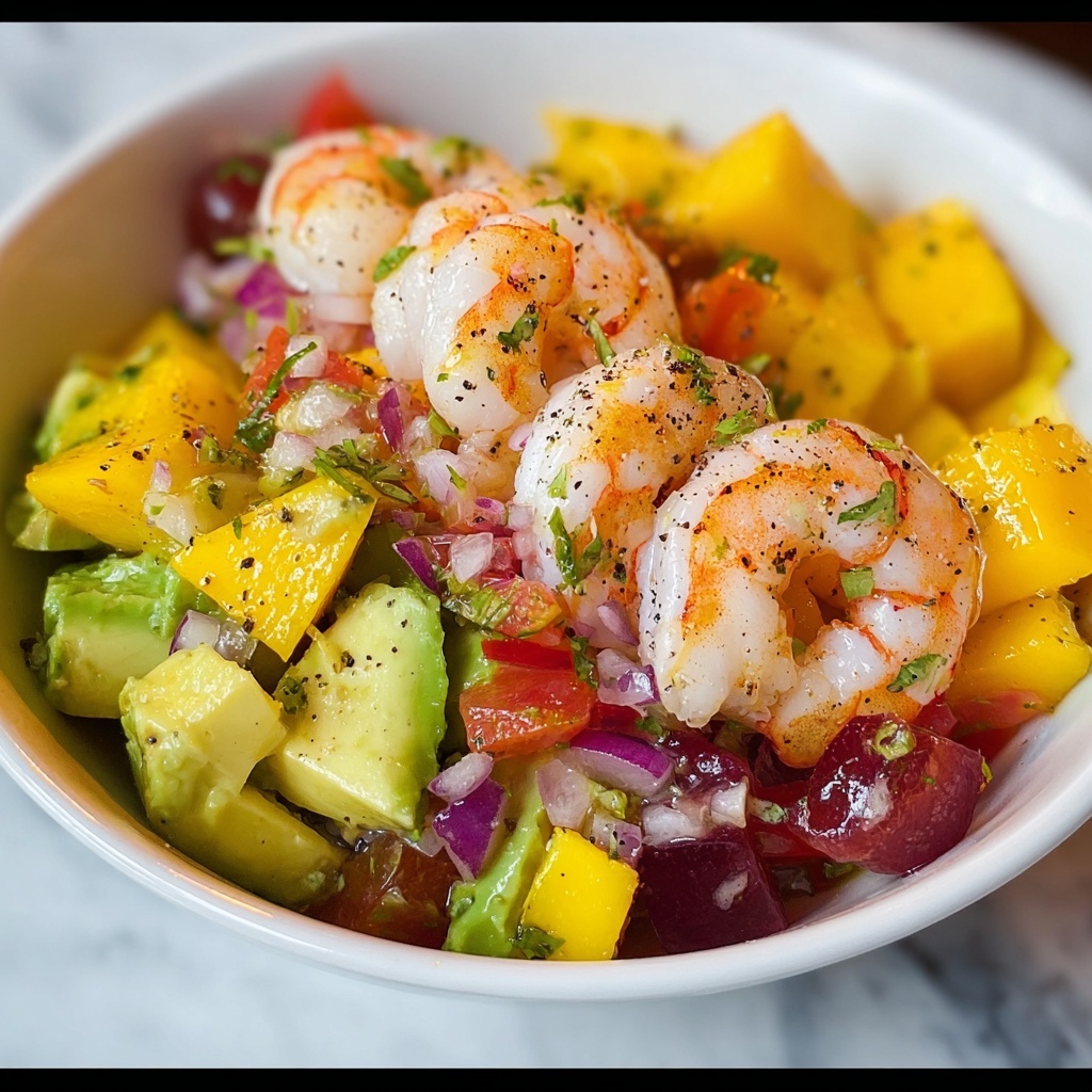 A fresh and vibrant Mango Avocado Shrimp Salad combining succulent cooked shrimp with creamy avocado, sweet mango, and a tangy lime dressing for a quick, healthy, and flavorful meal.