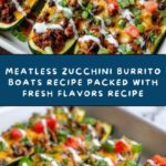 Delicious and healthy Meatless Zucchini Burrito Boats packed with fresh vegetables, black beans, and brown rice or quinoa, seasoned with Mexican spices and topped with melted cheese. Perfect for a wholesome vegetarian main course that’s easy to prepare and full of vibrant flavors.
