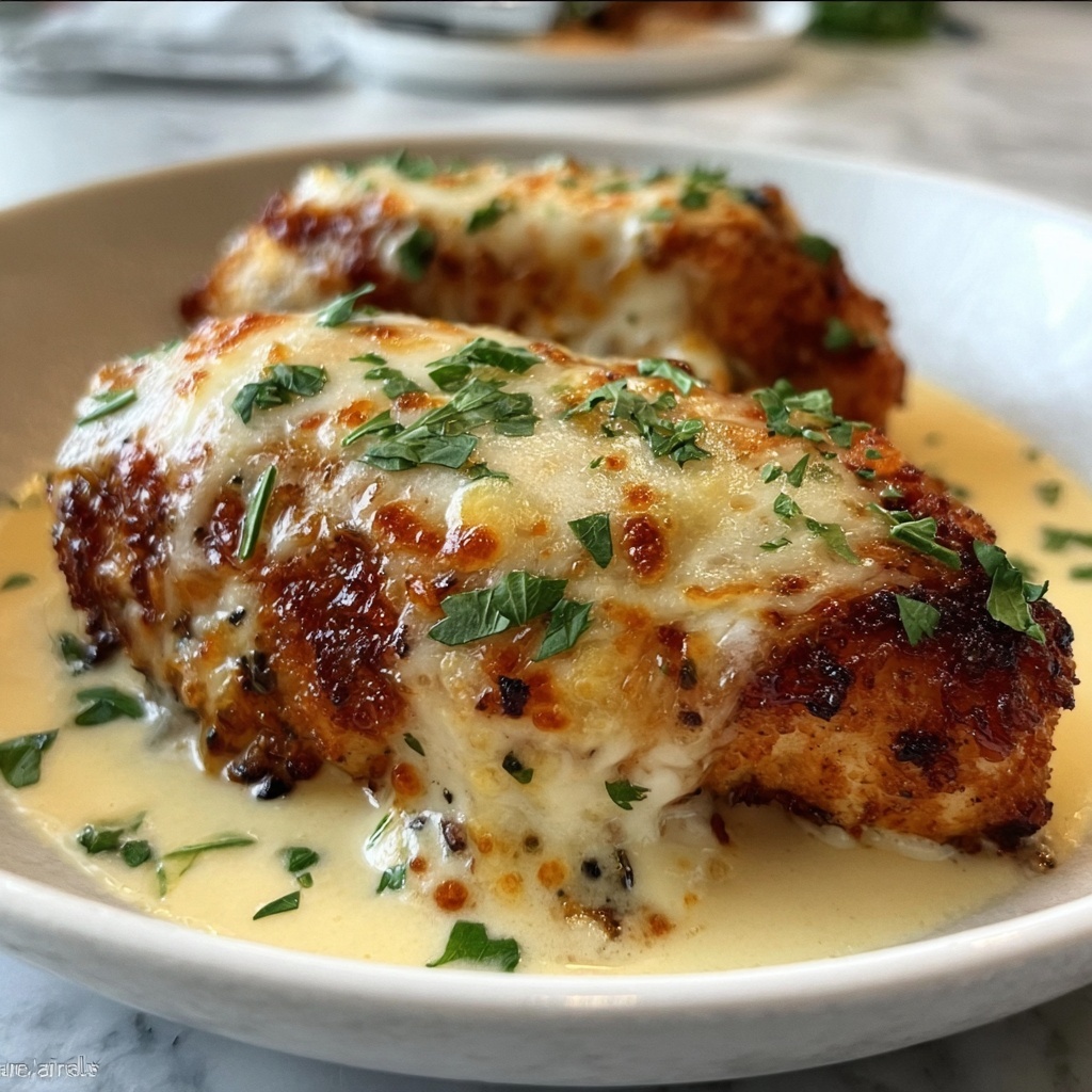 Once baked, let your chicken rest for a few minutes to allow the juices to redistribute, ensuring every bite is tender. Before serving, sprinkle fresh chopped parsley on top for a burst of color and a touch of herbal freshness that brightens the dish.