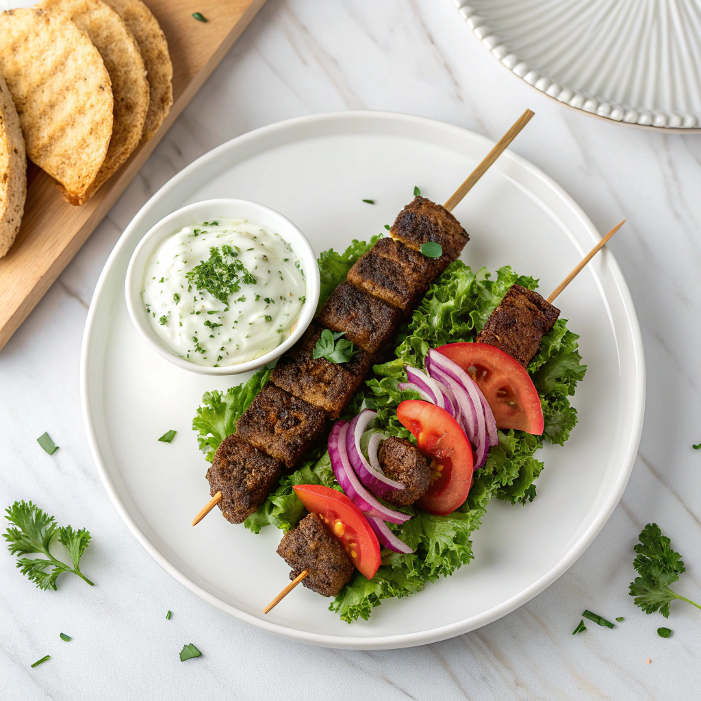 Sprinkle freshly chopped parsley and mint over the kebabs and salad for that final pop of color and fresh herbaceousness. A drizzle of tangy tahini sauce or a dollop of creamy Greek yogurt brings an added layer of richness that melts in your mouth.