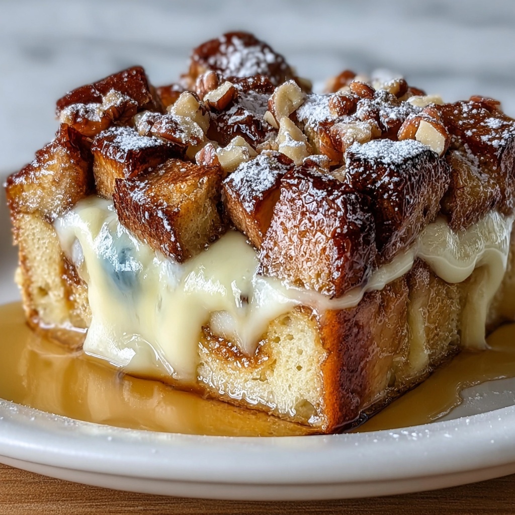 For brunch gatherings, serve the casserole directly in the baking dish for a casual, family-style feel or slice the casserole into neat squares and plate individually with small ramekins of syrup on the side for dipping. You can also add a sprig of fresh mint or a dusting of cinnamon for a beautiful, inviting presentation.