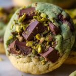 To really elevate the presentation of your NYC Style Pistachio Protein Cookies Recipe, press a few whole or halved pistachios onto the top before baking or sprinkle a tiny pinch of flaky sea salt right after they come out of the oven. These simple touches add a gourmet feel and enhance the flavors beautifully.
