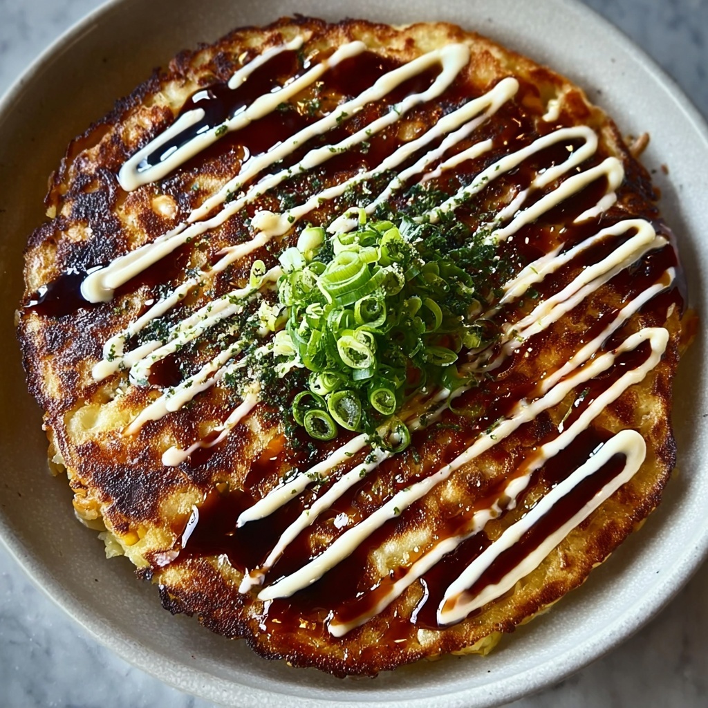 Okonomiyaki is a traditional Japanese savory pancake featuring a crispy exterior and a tender, flavorful interior packed with shredded cabbage, green onions, and optional proteins like shrimp or pork belly. This versatile dish is topped with a unique blend of Okonomiyaki sauce, creamy Japanese mayonnaise, bonito flakes, and seaweed flakes, creating a delightful balance of savory, tangy, and umami flavors. Perfect for a satisfying main course, these pancakes are easy to make on a stovetop skillet and can be adapted for vegetarian or gluten-free diets.