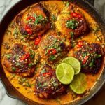 Serve this dish family-style in a rustic skillet or Dutch oven, allowing everyone to dig in and savor the communal experience. Alternatively, plate the chicken thighs atop a bed of coconut-lime rice garnished with fresh herbs and lime wedges for a restaurant-worthy presentation that’s sure to impress.