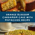 This Orange Blossom Cardamom Cake with Pistachios is a fragrant and moist dessert that combines the zesty freshness of orange juice and zest with the subtle floral notes of orange blossom water and the warm spice of cardamom. Topped with crunchy chopped pistachios and a luscious orange glaze, this cake is perfect for any celebration or a delightful afternoon treat.