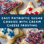 Celebrate your favorite patriotic holidays with these delightful Patriotic Sugar Cookies. Soft, buttery cookies cut into festive star and flag shapes, topped with creamy homemade cream cheese frosting and colorful sprinkles. Perfect for family gatherings, parties, or simply showing off your red, white, and blue spirit!