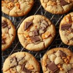These Peanut Butter Butterfinger Cookies combine creamy peanut butter with crunchy chunks of Butterfinger candy for a delightful treat. Soft and chewy with a melt-in-your-mouth candy surprise in every bite, they make perfect homemade cookies for any occasion.