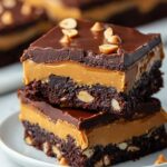 Bake the brownies for 25 to 30 minutes, or until the top is set and a toothpick inserted in the center comes out with just a few moist crumbs. Be careful not to overbake, as you want a fudgy, moist texture rather than a dry cake. Once baked, let the brownies cool completely in the pan to allow the peanut butter layer to firm up, making slicing much cleaner and easier.