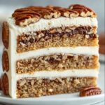 Place one cooled cake layer on your serving plate and generously spread the pecan filling over the top, but leave a small border near the edges so it doesn’t spill over. Gently place the second cake layer on top, pressing just a little to set it firmly. Finally, cover the entire cake with your luscious buttercream frosting, smoothing it out on the top and sides for a beautiful presentation.