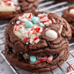 - Add toppings: Once the cookies have cooled, sprinkle the crushed peppermint candies on top. If desired, melt the white chocolate chips and drizzle over the cookies to add a festive finish.