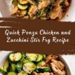 This Ponzu Zucchini Stir Fry with Chicken is a flavorful and quick dish perfect for a healthy weeknight dinner. Tender slices of chicken are stir-fried with zucchini and onions in a tangy ponzu and oyster sauce blend, enhanced with garlic, a touch of chili crunch, and garnished with sesame seeds for a delightful crunch. Ready in just 20 minutes, it brings a delicious Asian-inspired taste to your table.