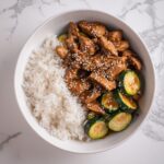 This Ponzu Zucchini Stir Fry with Chicken is a flavorful and quick dish perfect for a healthy weeknight dinner. Tender slices of chicken are stir-fried with zucchini and onions in a tangy ponzu and oyster sauce blend, enhanced with garlic, a touch of chili crunch, and garnished with sesame seeds for a delightful crunch. Ready in just 20 minutes, it brings a delicious Asian-inspired taste to your table.