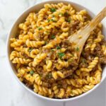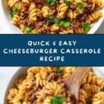 This Quick & Easy Cheeseburger Casserole combines all the classic flavors of a cheeseburger in a comforting baked pasta dish. Featuring ground beef, cheddar cheese soup, tangy ketchup and mustard, and topped with melted cheddar cheese and optional pickles, it’s a satisfying meal perfect for busy weeknights.