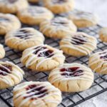 Delightfully buttery and tender Raspberry Shortbread Cookies topped with sweet raspberry jam and finished with a smooth almond glaze. These classic cookies offer a perfect balance of rich shortbread and fruity jam, making them an ideal treat for tea time or dessert.