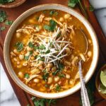 The garnishes are where the magic really happens. Shredded cabbage provides a crispness that contrasts beautifully with the tender chicken, while diced radishes add a peppery crunch. Creamy avocado cools down the heat from the chiles, and a squeeze of lime juice brightens every bite. Don’t forget the tortilla chips to scoop and crunch—these small touches bring your bowl of Red Chicken Pozole Soup Recipe to life.