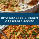 A comforting and easy-to-make Ritz Cracker Chicken Casserole featuring tender shredded chicken combined with creamy soup, topped with crispy Ritz crackers and melted cheddar cheese. This baked casserole is perfect for a family dinner, delivering a crispy, cheesy, and savory flavor in every bite.