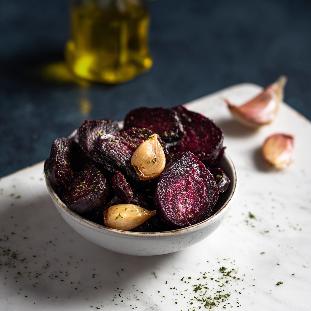 - Serve: Serve the roasted beets and garlic warm or at room temperature. Optionally garnish with fresh thyme or a splash of balsamic vinegar for extra flavor.