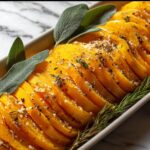 This Roasted Hasselback Butternut Squash with Sage Butter is a visually stunning and flavorful side dish perfect for cozy dinners and holiday meals. The butternut squash is roasted until tender, sliced thinly in the traditional Hasselback style, and layered with a fragrant sage-infused browned butter. Topped with sharp Parmesan cheese and a hint of red pepper flakes for a mild kick, this recipe combines sweet, savory, and aromatic flavors in a delightful presentation that’s sure to impress.