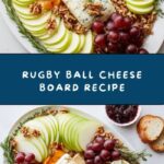 For a seasonal twist, place the cheese board on a wooden slab or use a large oval mirror tray for an elegant reflection effect. You could even add miniature goalposts made from skewers on the board’s edges to emphasize the rugby theme for game day gatherings.