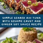 This Simple Seared Ahi Tuna with Sesame Crust and Ginger Soy Sauce Recipe pairs beautifully with light, fresh sides. Think a crisp cucumber salad, steamed jasmine rice, or even a simple seaweed salad to enhance its Japanese-inspired flair. These sides keep the plate light and complement the tuna’s vibrant flavors without overpowering it.