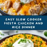 This Slow Cooker Fiesta Chicken and Rice is a flavorful, easy-to-make dish combining seasoned chicken breasts, creamy condensed soup, diced vegetables, and cheesy Spanish rice. Perfect for busy days, it delivers a hearty and delicious Mexican-inspired meal with minimal hands-on time.