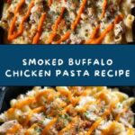 This Smoked Buffalo Chicken Pasta recipe combines tender, smoky chicken thighs marinated in a spicy garlic buffalo sauce with creamy Alfredo pasta, cream cheese, mozzarella, and ranch dressing. Slow smoked to infuse rich flavor, this decadent dish is perfect for game day or a comforting dinner that serves 8 to 9 people.