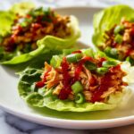 Butter lettuce or iceberg lettuce leaves are ideal because they’re sturdy yet tender, perfect for holding the filling without tearing. Romaine can work, but its thicker leaves might be less pliable.