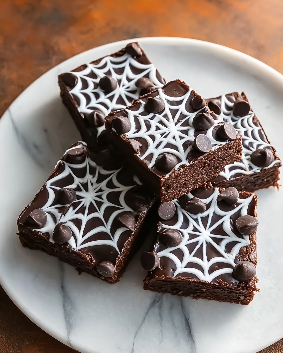 Patience pays off here—the brownies need to be completely cool in the pan before you start on the decoration. This ensures your spider web design won’t melt or smear, keeping every line sharp and spooky.