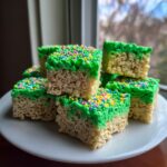 Celebrate St. Patrick’s Day with these festive and fun Rice Krispies Treats. This easy no-bake recipe combines buttery marshmallows with crispy cereal, tinted green for the holiday, and topped with colorful sprinkles, perfect for sharing and joyful snacking.