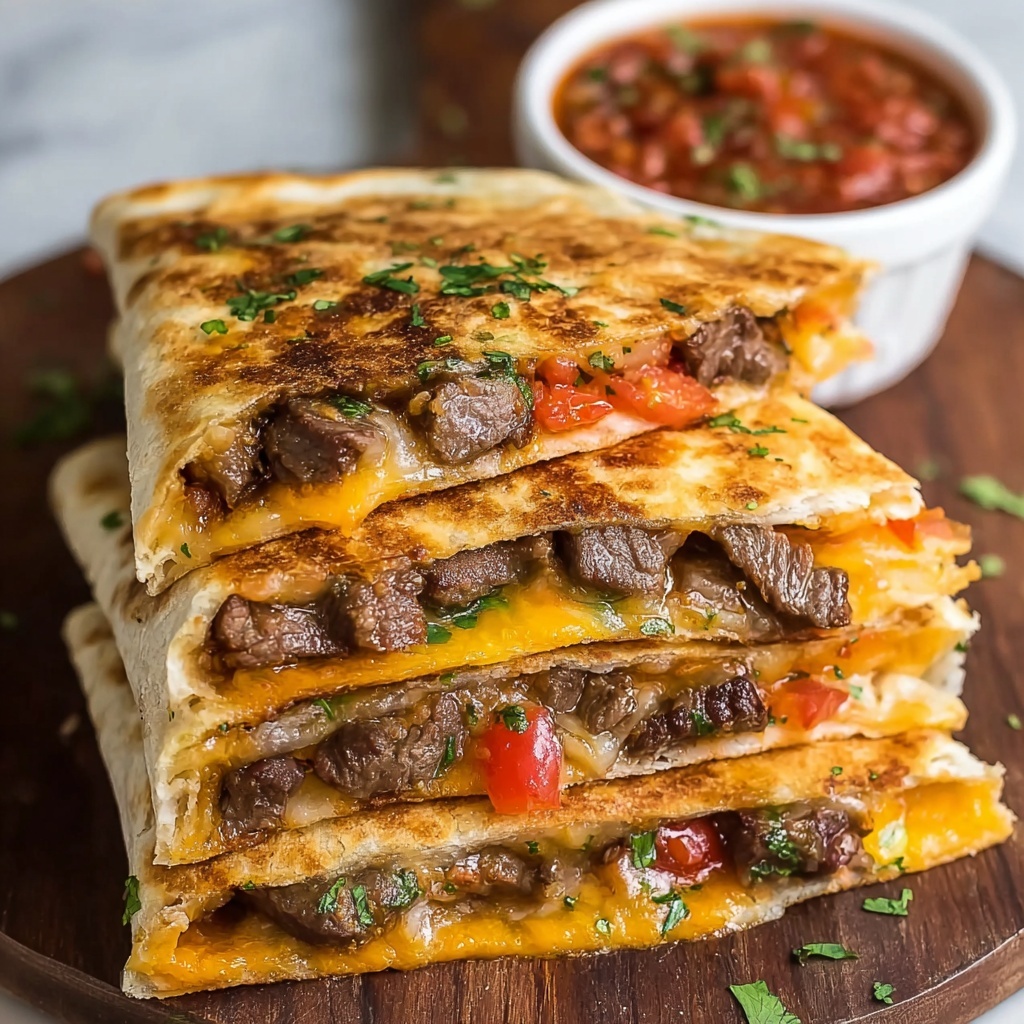 This Steak Fajita Quesadilla recipe combines tender, flavorful flank steak with sautéed bell peppers and onions, melted cheese, and warm flour tortillas for a satisfying and delicious meal. Ready in just 30 minutes, it’s perfect for a quick weeknight dinner or casual gathering, with optional toppings like sour cream, guacamole, and salsa to elevate the flavors.